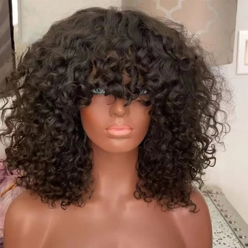 Short Bob Curly Human Hair Wigs Ombre Brazilian Remy with Bang Full Machine Made 180% Density Wig