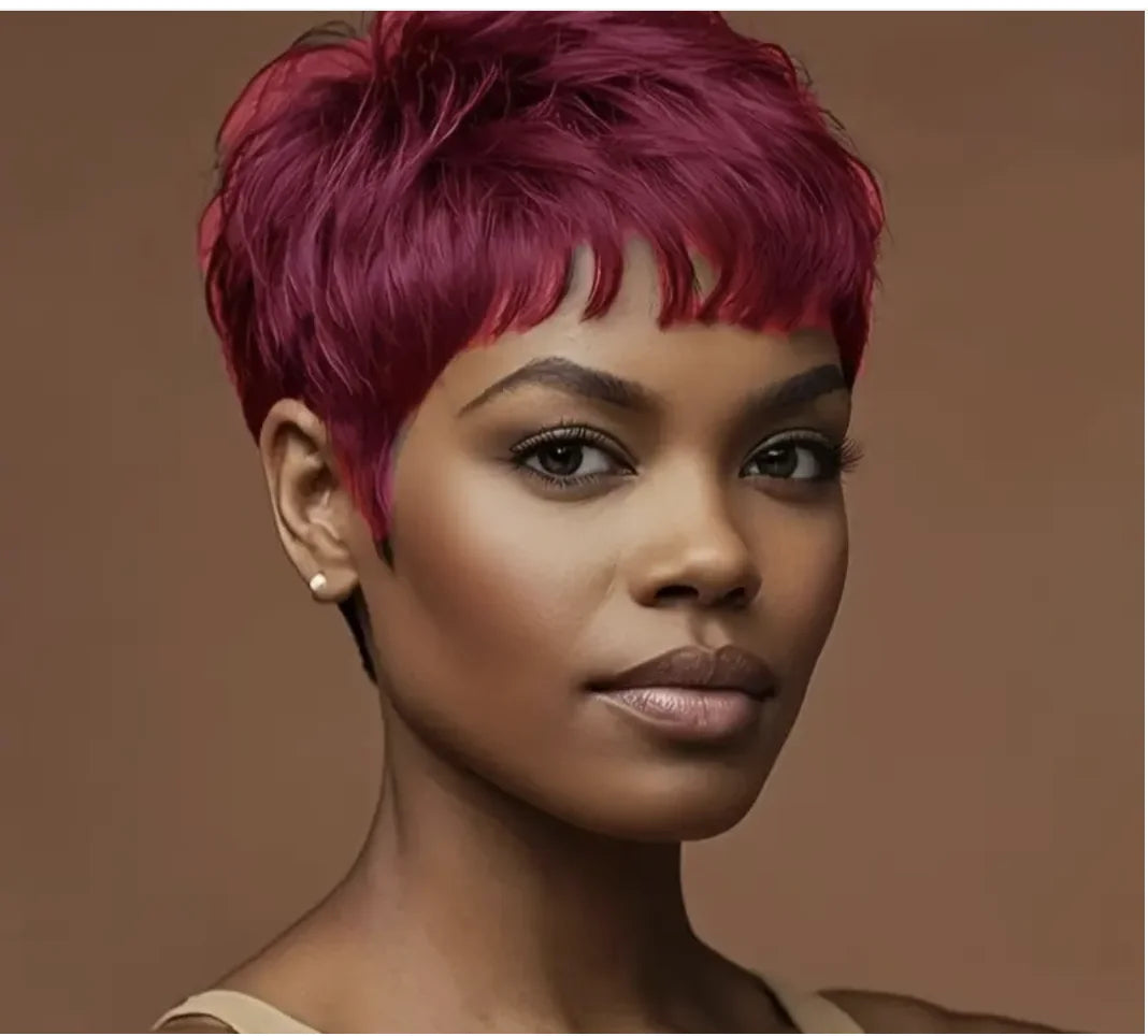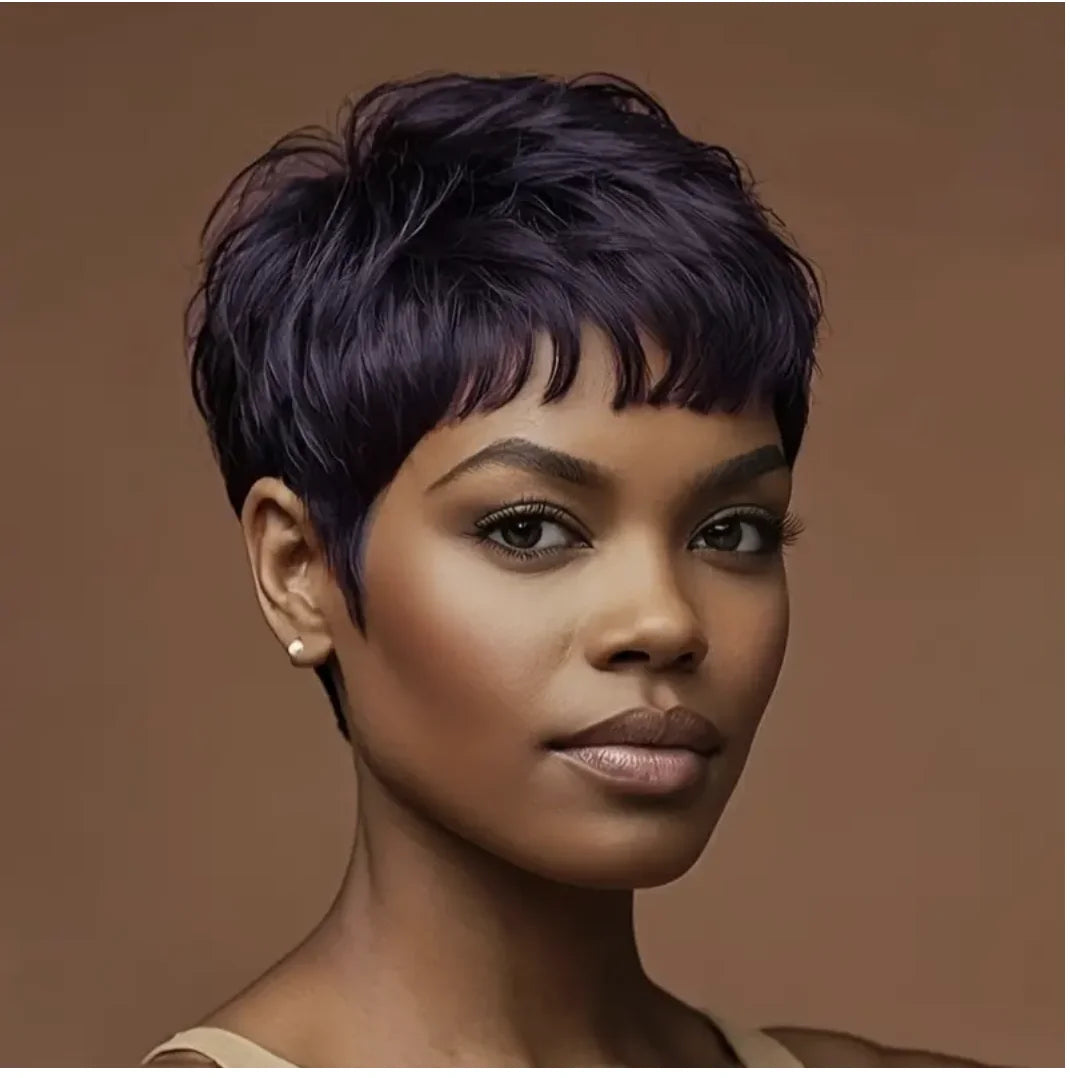 Synthetic Solid Color Synthetic Pixie Cut Wig with Bangs