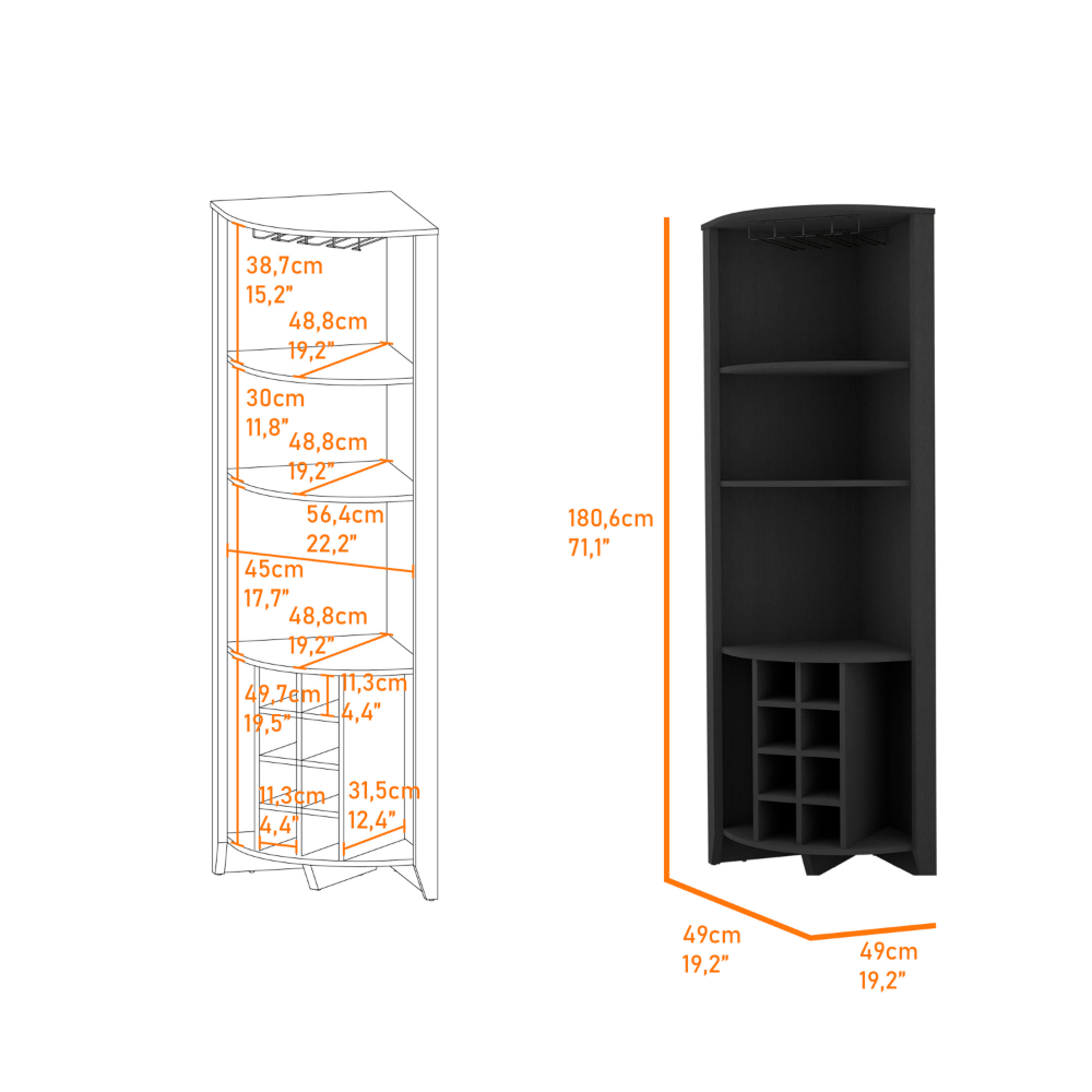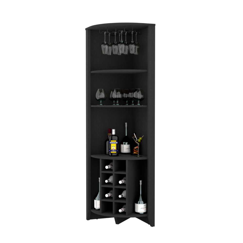 Bouvet Corner Bar Cabinet, Three Shelves, Eight Wine Cubbies, Two Side Shelves by FM FURNITURE