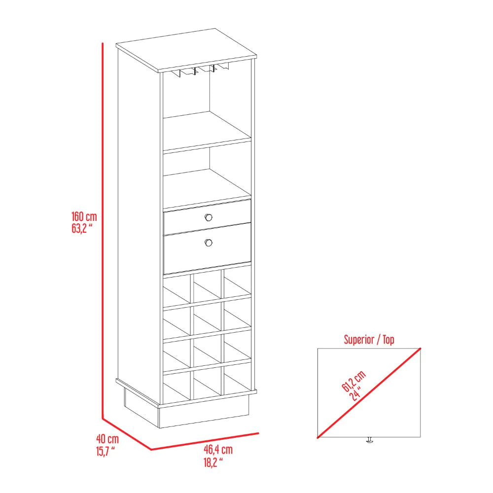 Hype Bar Cabinet, Twelve Wine Cubbies, Two Drawers, One Shelf by FM FURNITURE