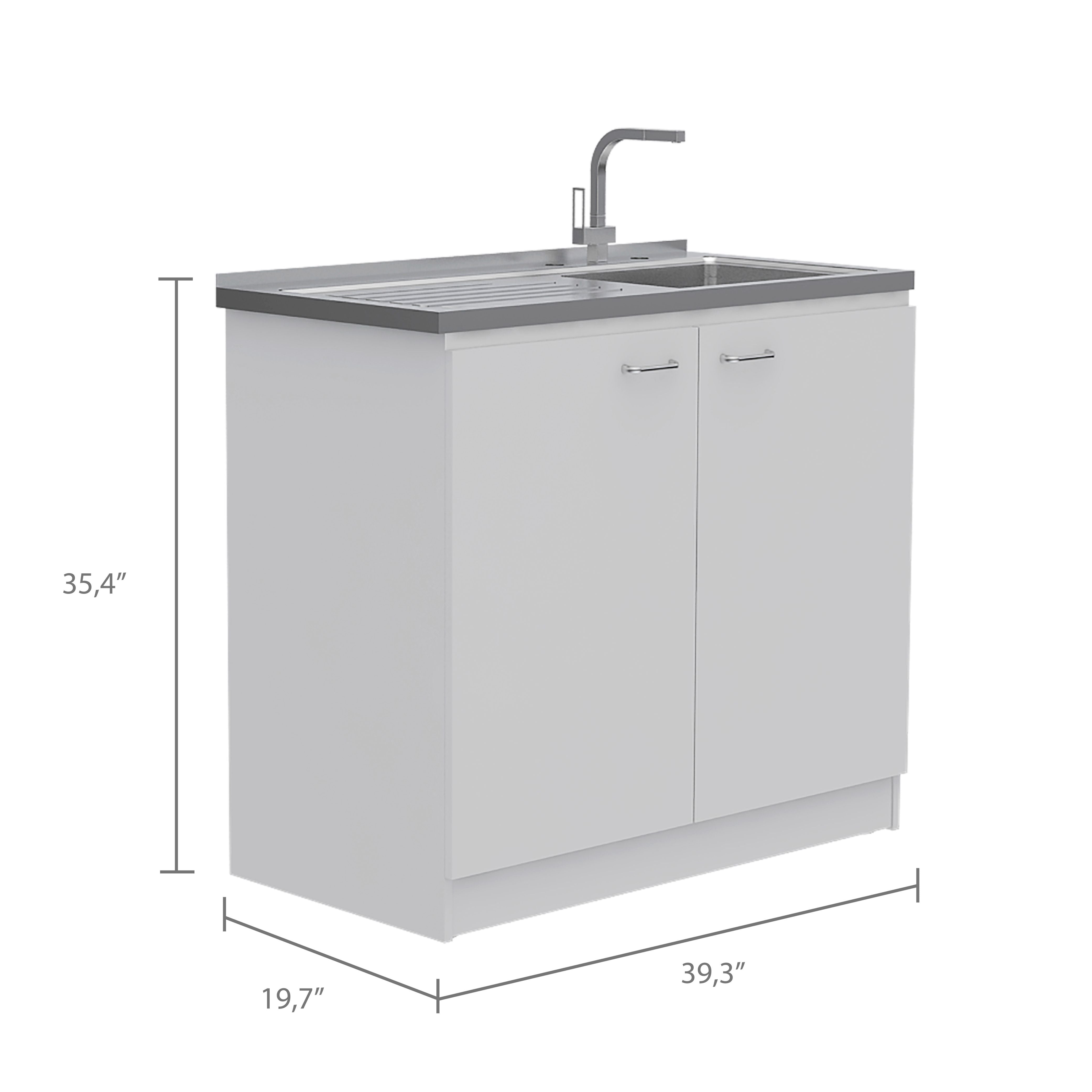This Oklahoma Utility Sink & Cabinet is the perfect addition to your kitchen! It features a sizeable two-door cabinet (each 19,2" W) with heavy-duty metal handles and internal storage so that it can keep everything out of sight. The top surface is large (39,3 "W X 19,7 "D), ideal for prep work, and designed in durable stainless steel. The faucet is not included, so you can customize it any way you want.