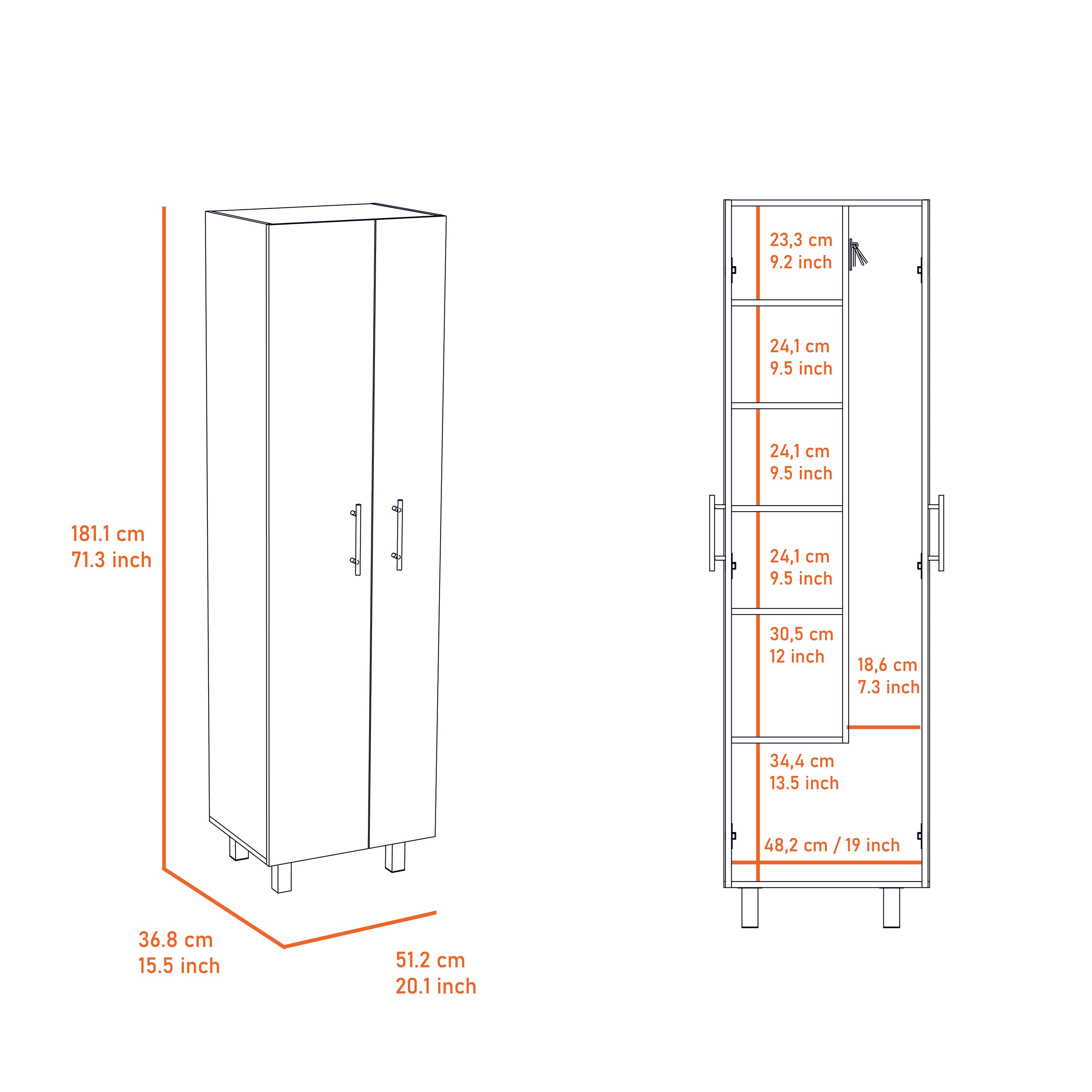 The Norway Broom Closet Pantry is an ingeniously designed storage solution that will make your life easier and your home more organized. This pantry is ergonomically designed, with two wide doors, significant internal storage, five shelves, and ample storage space. The Norway Broom Closet Pantry is the perfect storage solution for any home. It is elegant, efficient, and easy to use.