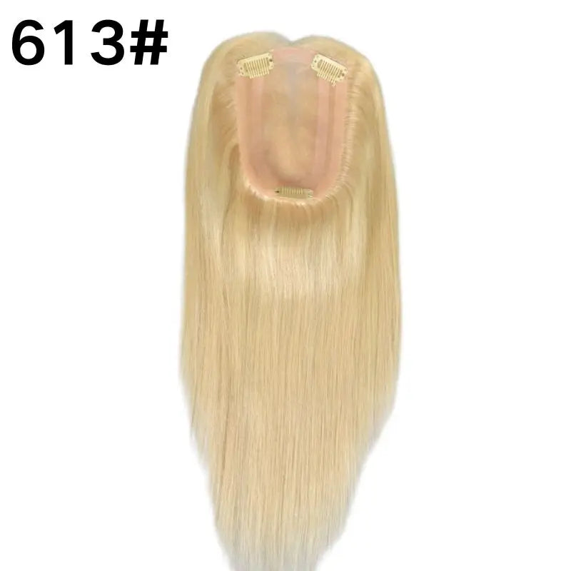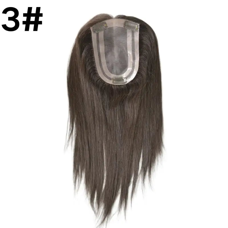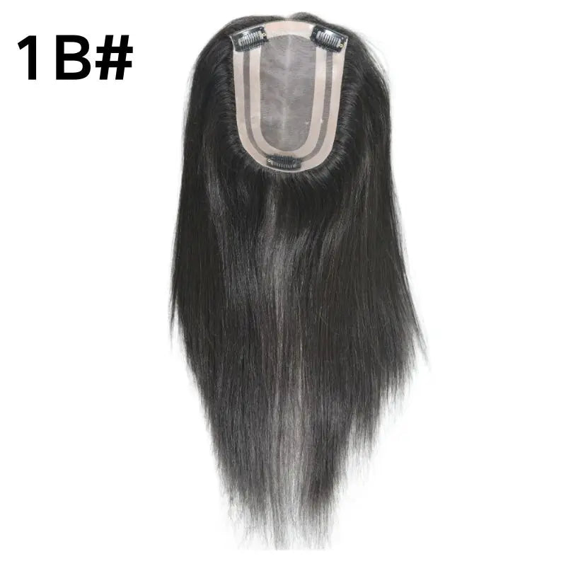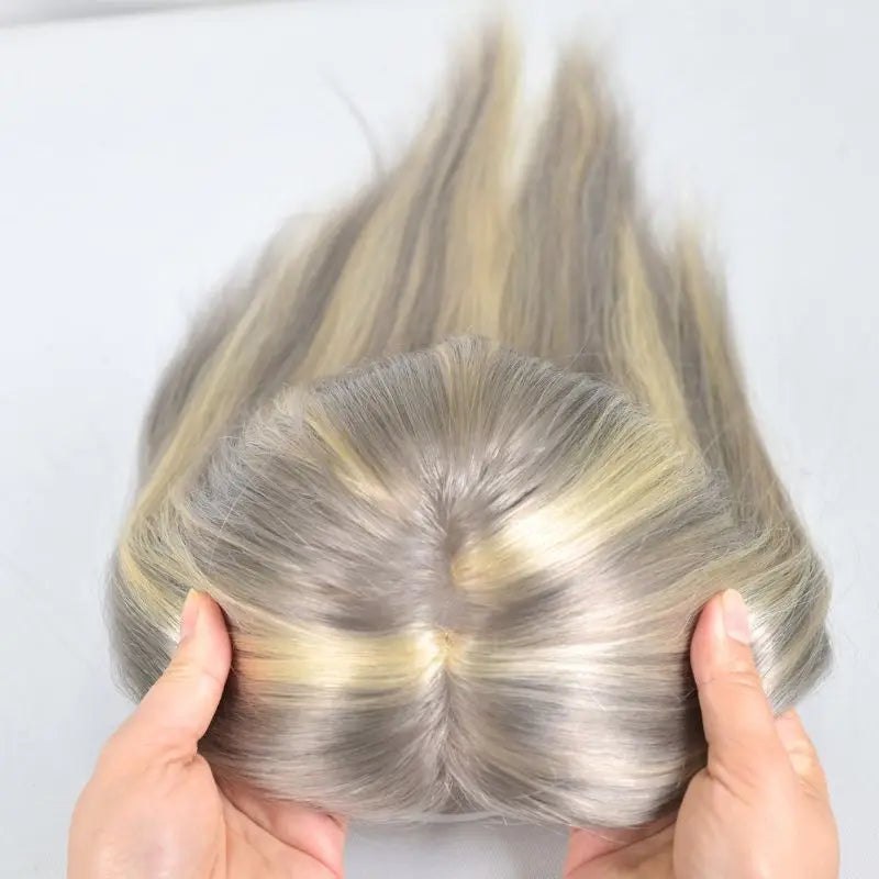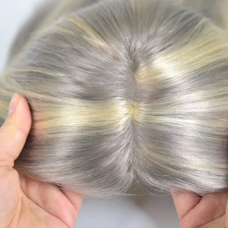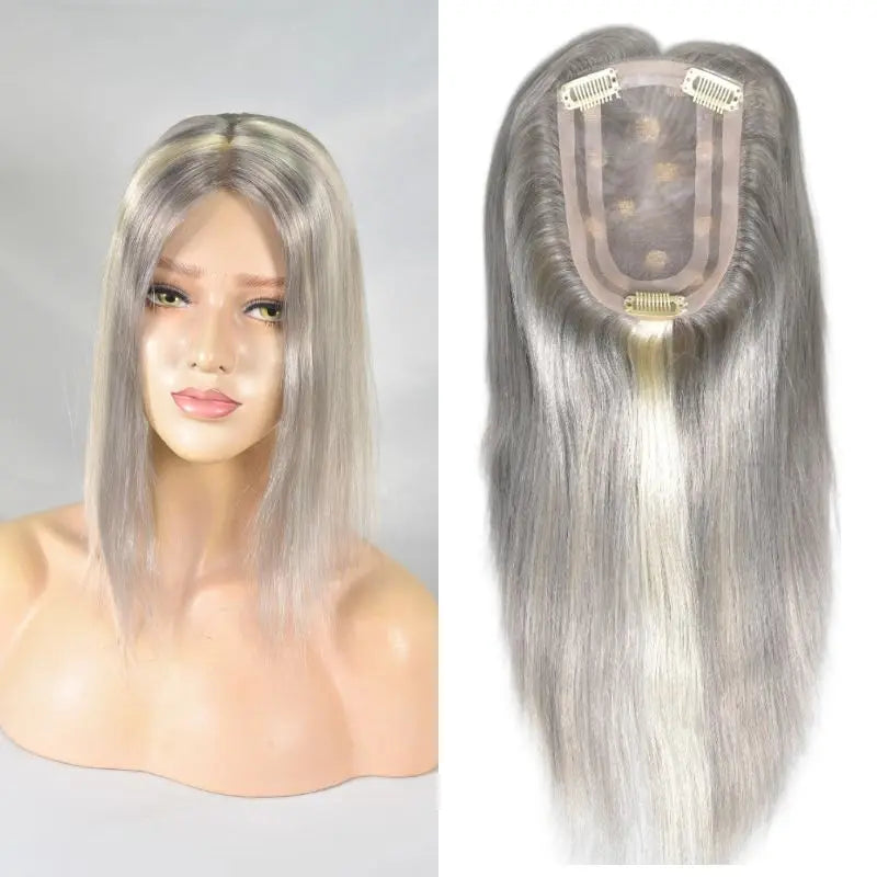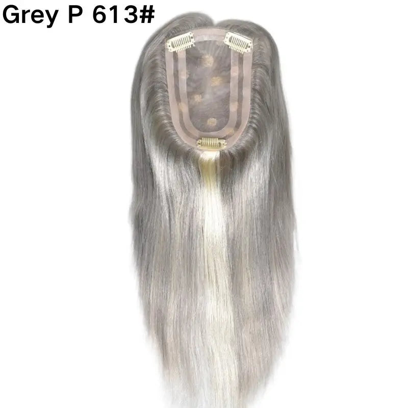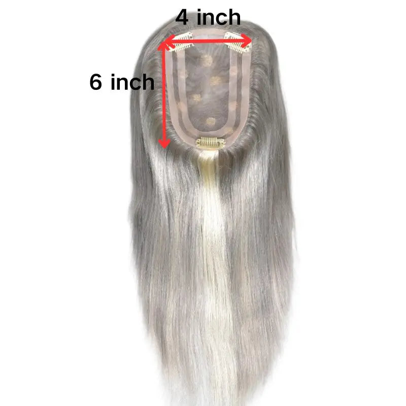 Pwigs Grey European Human Hair 4x6 Inch Base Mono Lace with PU Clip-In Hair Topper