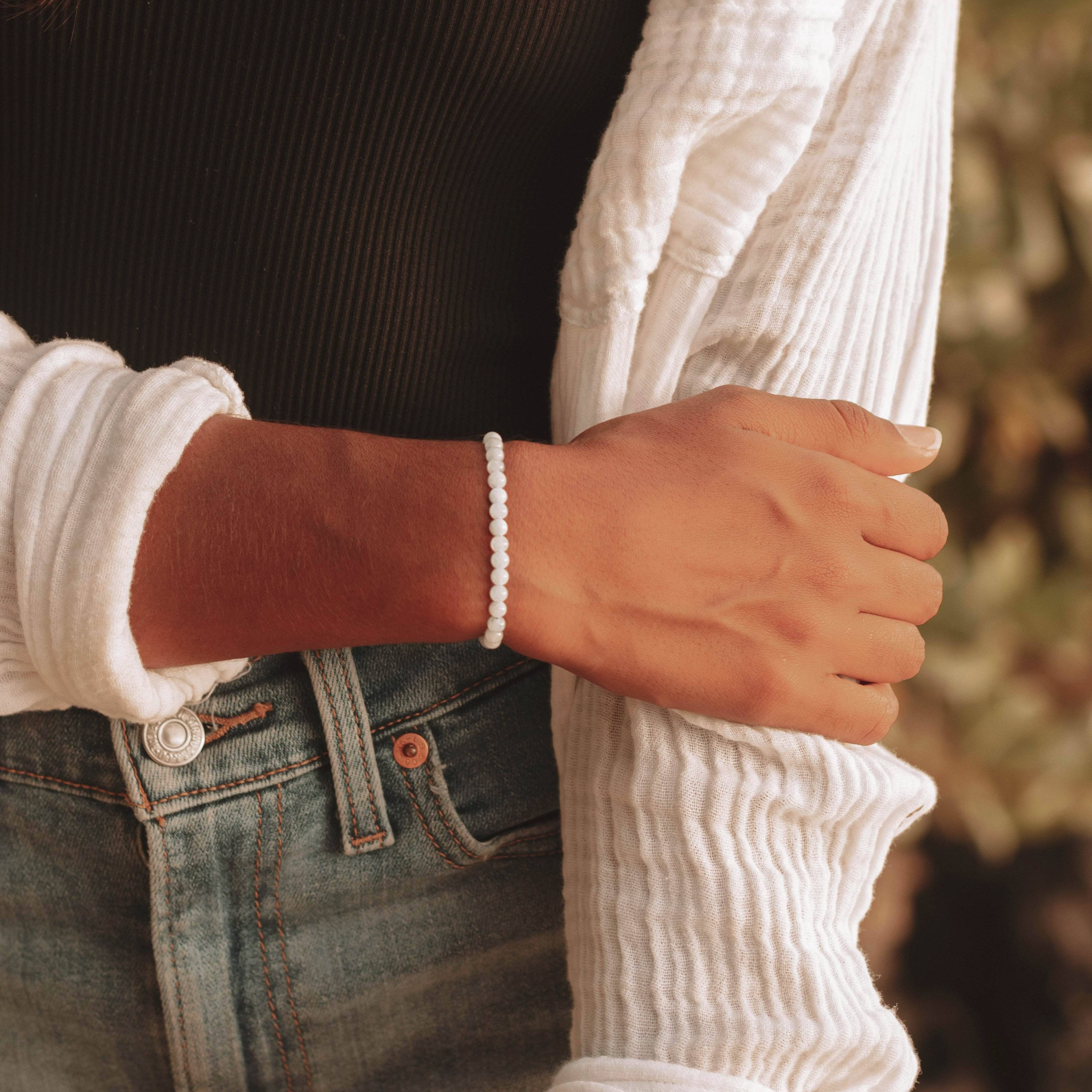 The color blue has long been associated with spiritual realms. It’s the shade of heaven, the line drawn between the ocean and the air, and the same hue that calls to our throat chakra, encouraging communication and truth to flow. The Blue Chalcedony Bracelet vibrates with pure positivity, sending healing vibes to every corner of our soul and inviting progression, growth, and steady balance.