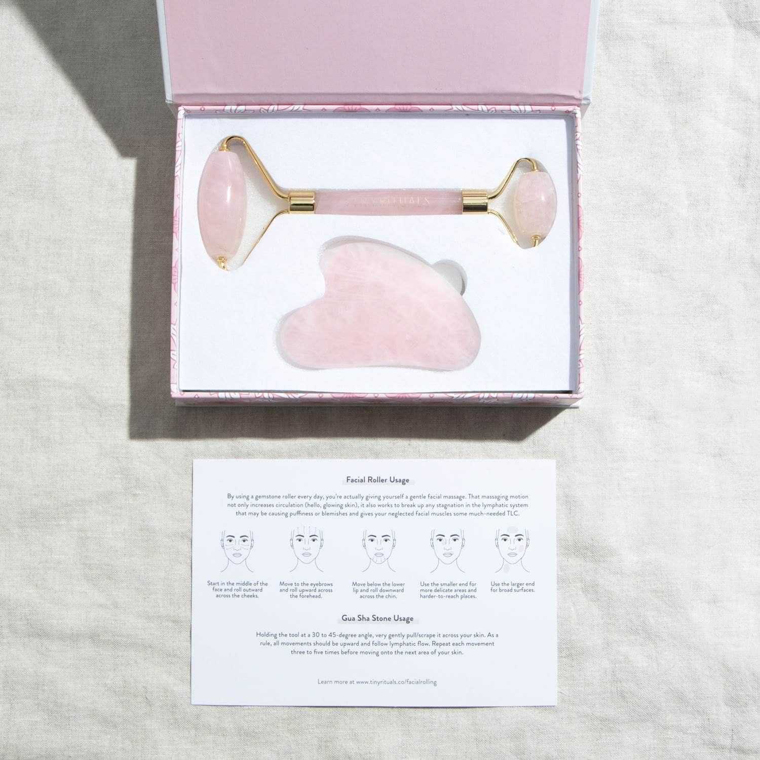 Crystal Facial Roller & Gua Sha Stone Kit by Tiny Rituals