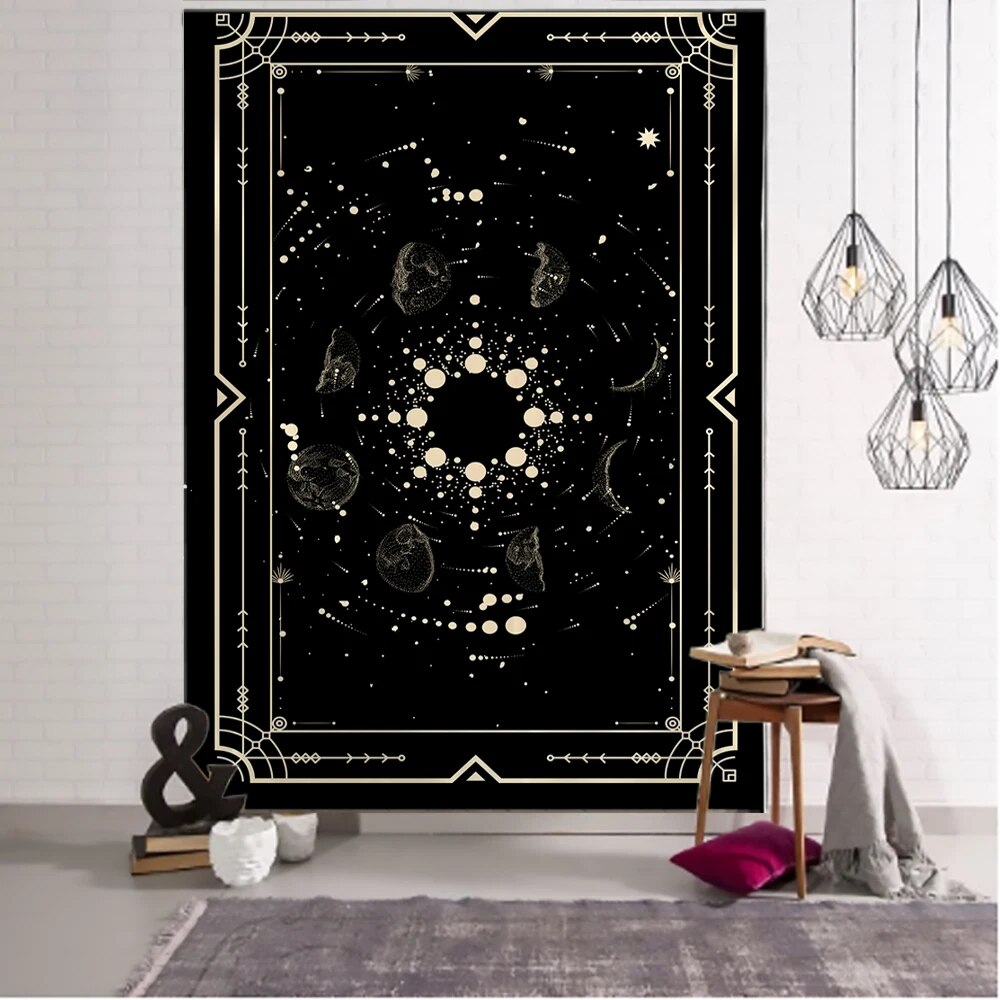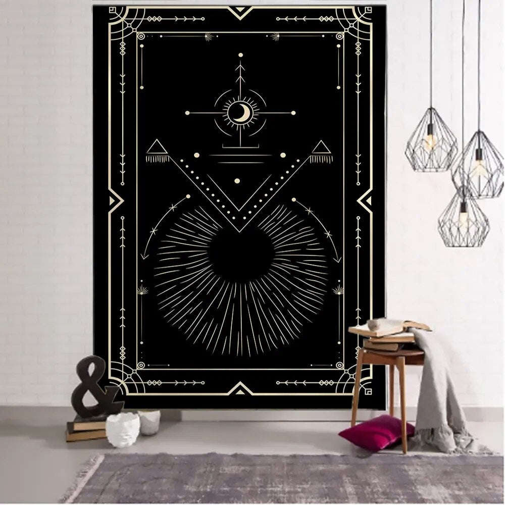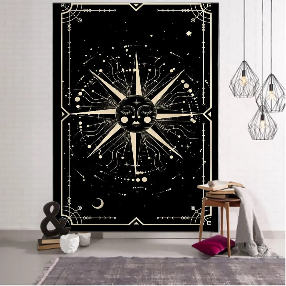 Golden Black Sun Moon Tarot Mandala Tapestry Wall