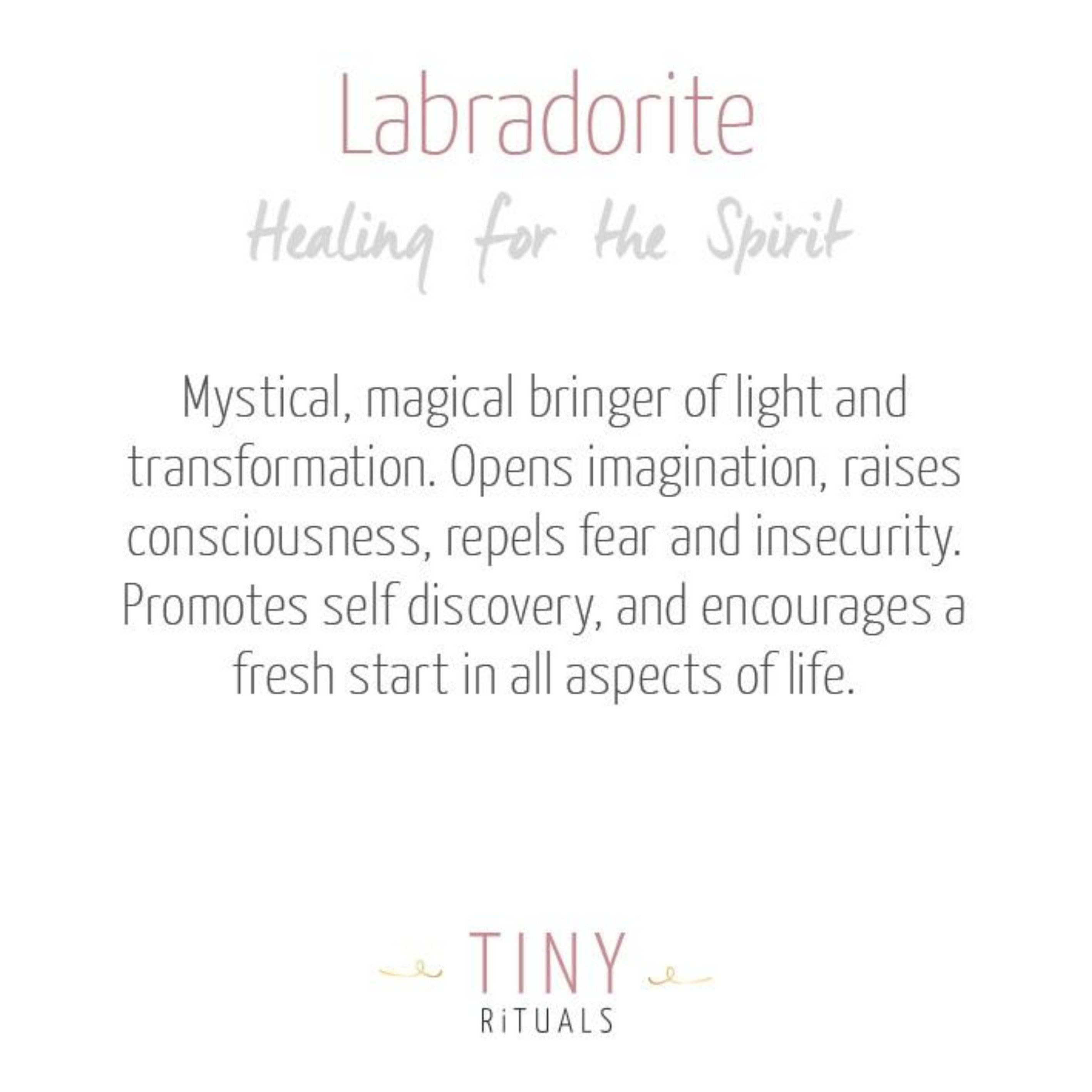 While the world can strip us of our energy, Labradorite works in harmony with the universe at large to bring life-giving elements to our body, mind, and soul. It's an excellent stone for working with depression and anxiety as it has a good grounding force that enables us to be wild and creative without becoming untethered from the world beneath our feet.