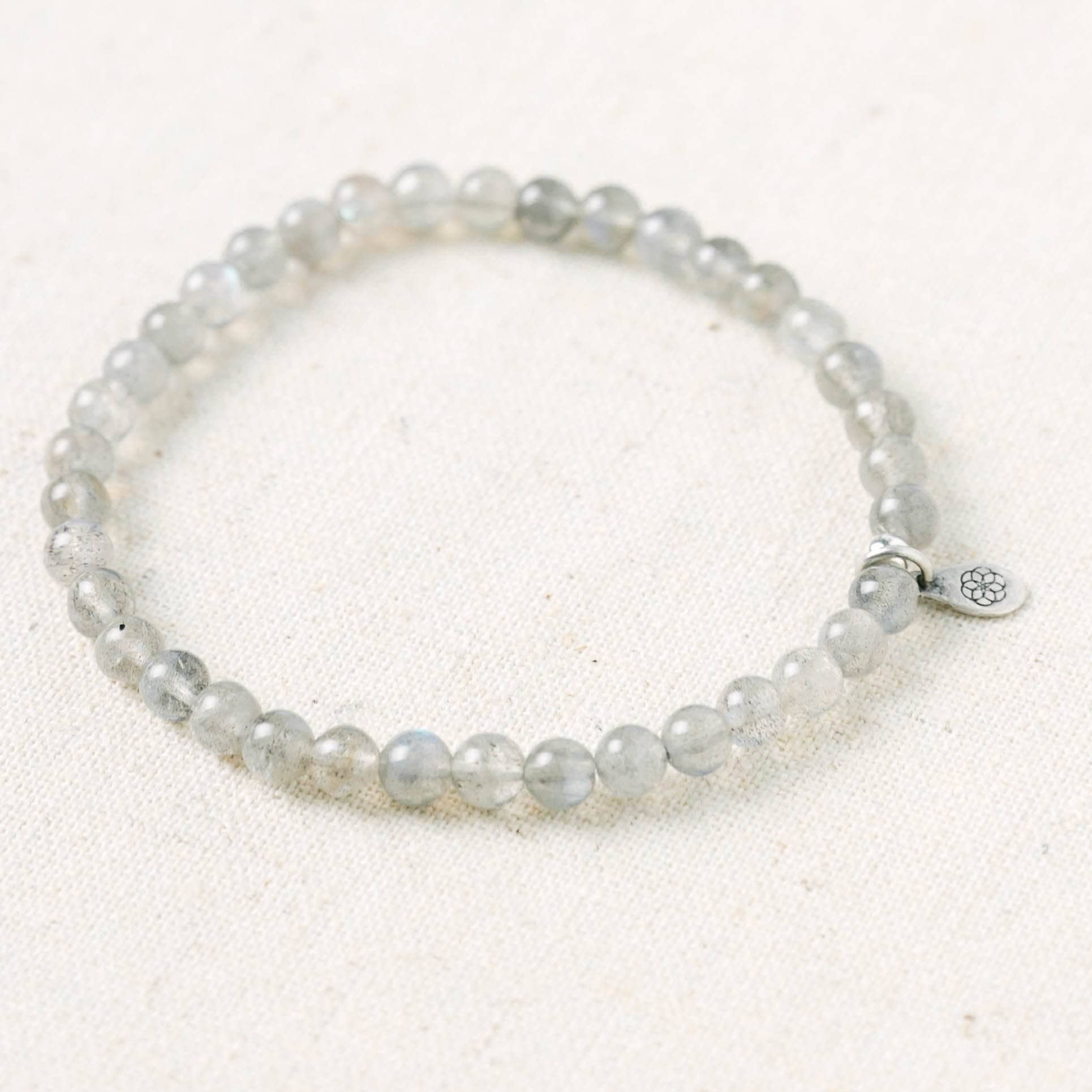 The Labradorite Energy Bracelet is married to our third eye chakra, the one that sees deeper, can connect with higher consciousness, and can help us move beyond old ideas and into a life of possibility. With its swirling aurora-aura, Labradorite also helps us to stay switched on to the spiritual side of the natural world. Earth is full of cosmic energy, and this glistening precious stone is all stardust, moonlight, and rare energy forces that help us to awaken from our human slumber.