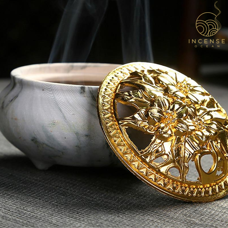 Marble Coil Censer Incense Burner Copper Cover Ceramic by incenseocean