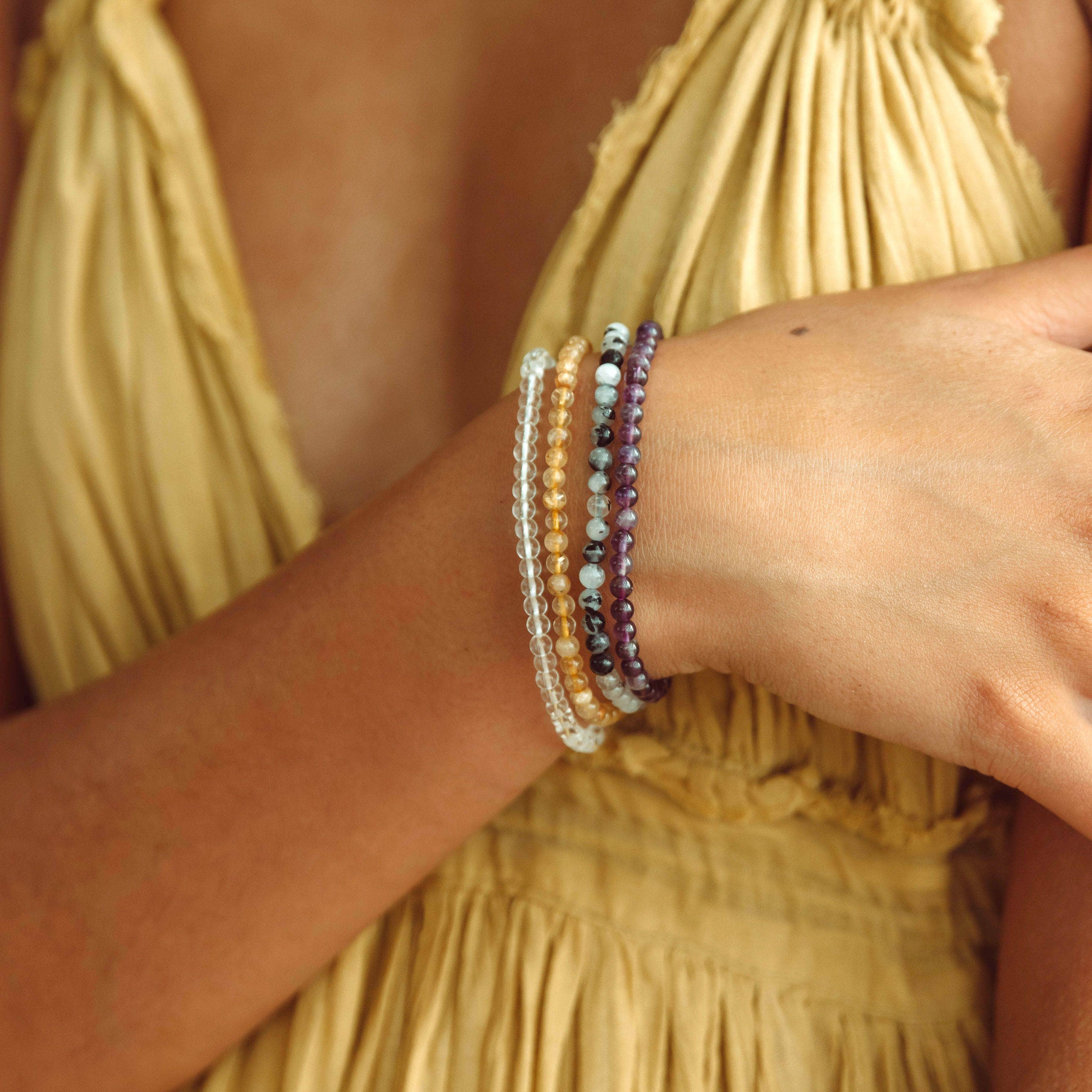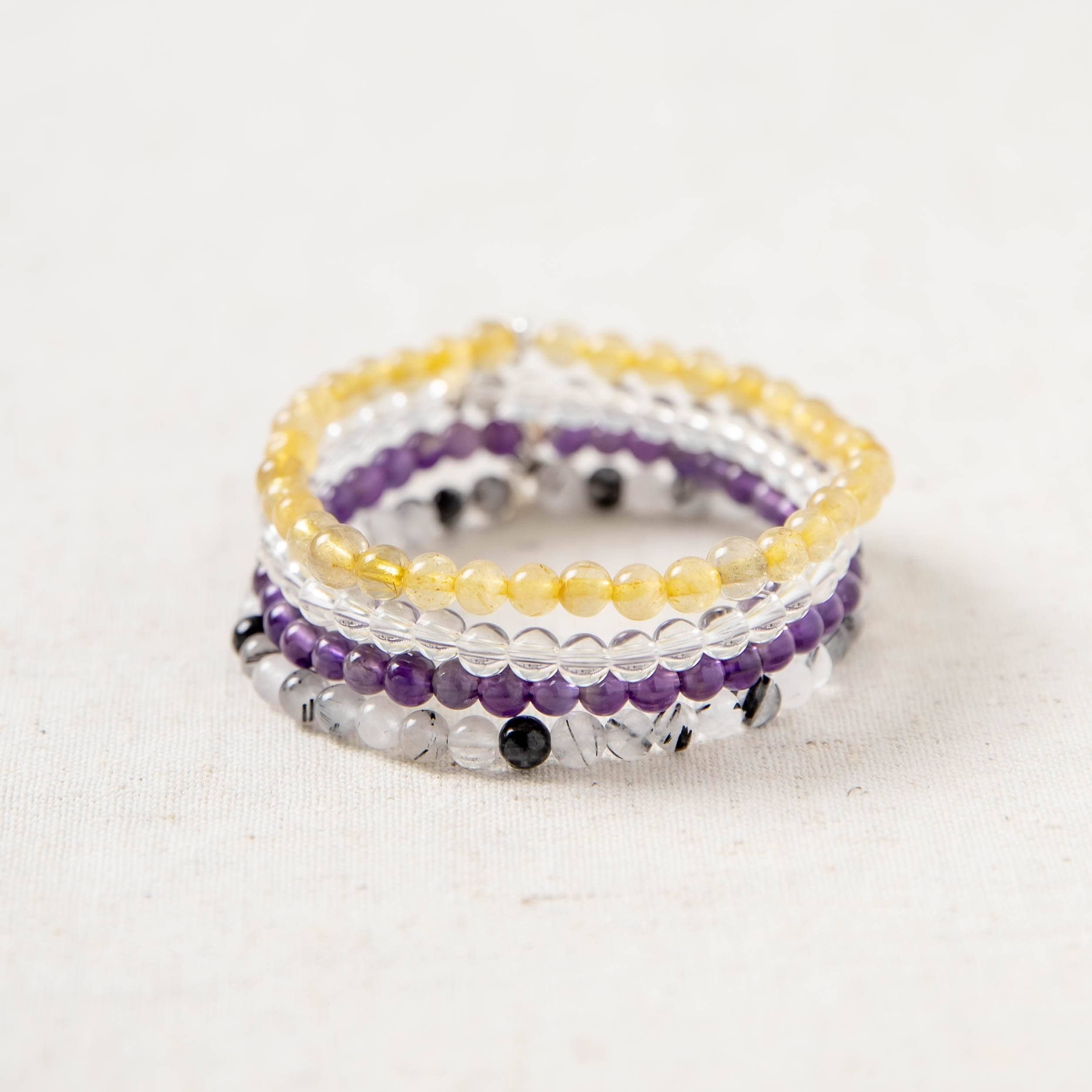 Hit a high note on your healing journey as you say yes to the cycle of absorb, store, release and regulate to bring you back to balance. The Master Healing Bracelet Set marries the soothing stones of Amethyst, Clear Quartz, and Yellow and Black Rutilated Quartz to lighten your load.