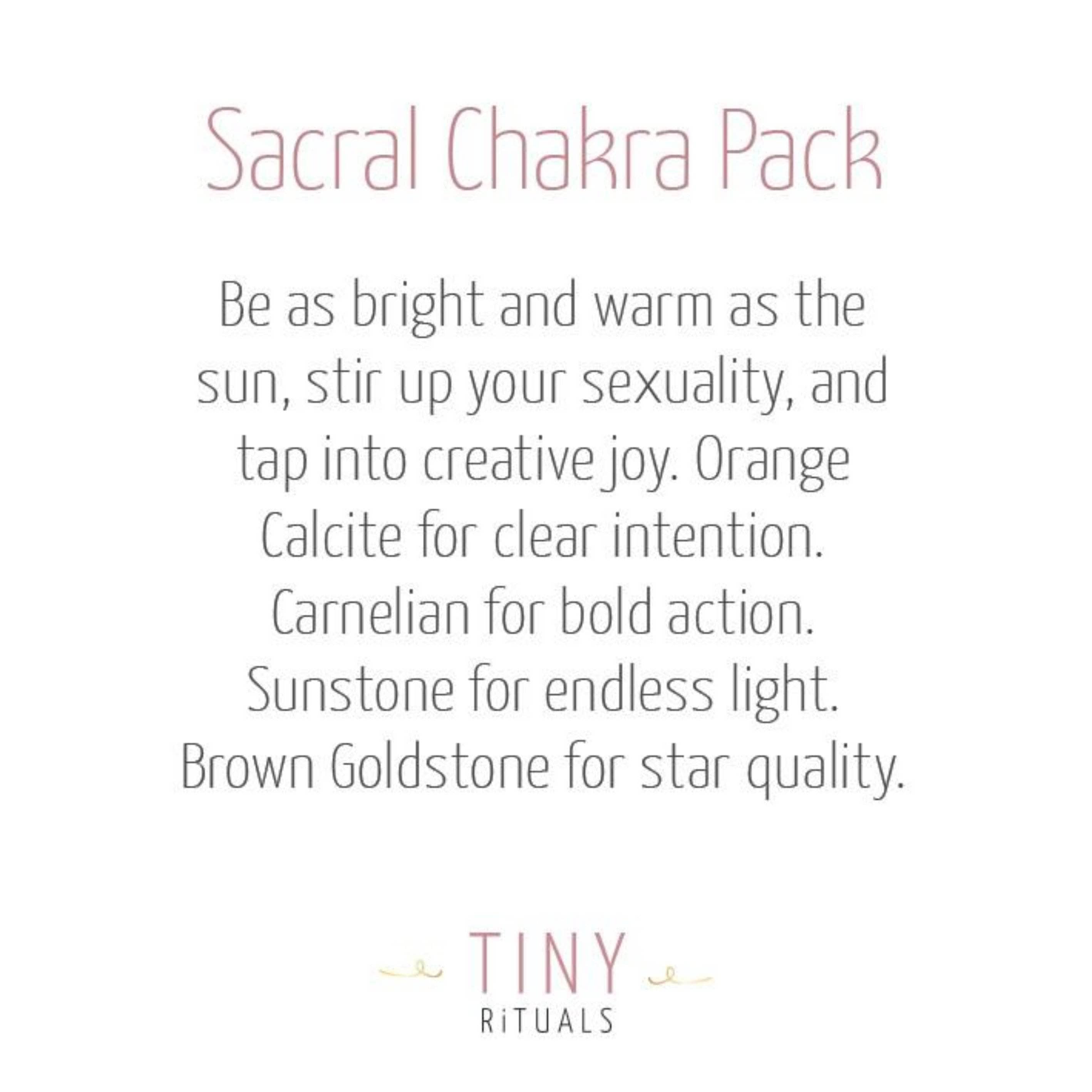 The cosmos of your swirling creative fire and sexual light, this Sacral Chakra Pack is ready to bring back your playful touch, inner warmth, and joyful childlike nature. Bringing together the flickering flames of Orange Calcite, Carnelian, Sunstone, and Brown Goldstone, this supercharging crystal pack sparks a light in your soul.
