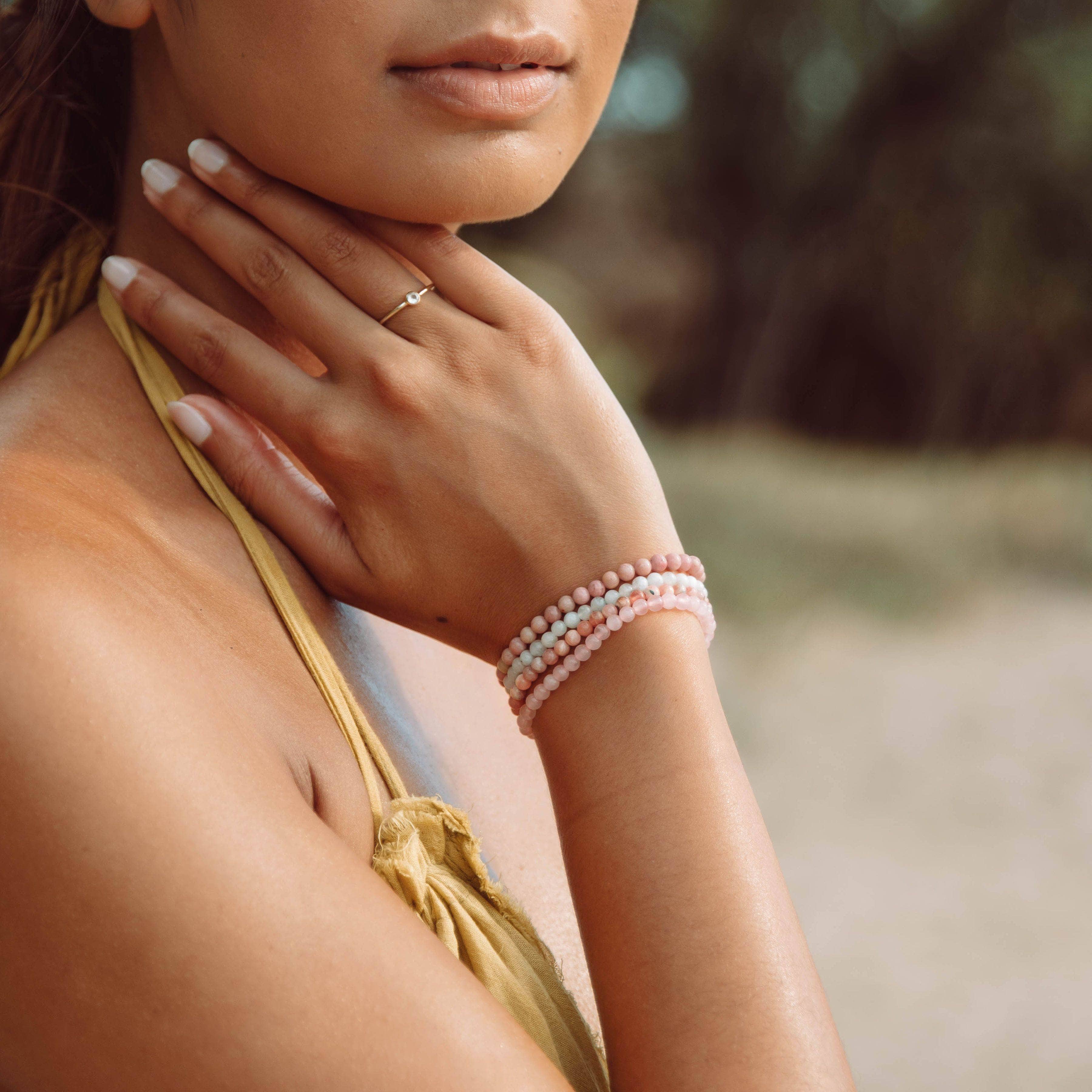 Be your own advocate, extend a hand to your inner child, and invite a glut of love into your life with this gentle and joyous Self-Love Gemstone Bracelet Set. Feed the heart chakra what it needs with the soothing rose tones of Rose Quartz, Rhodochrosite and Rhodonite, and invoke inner balance with Rainbow Moonstone.