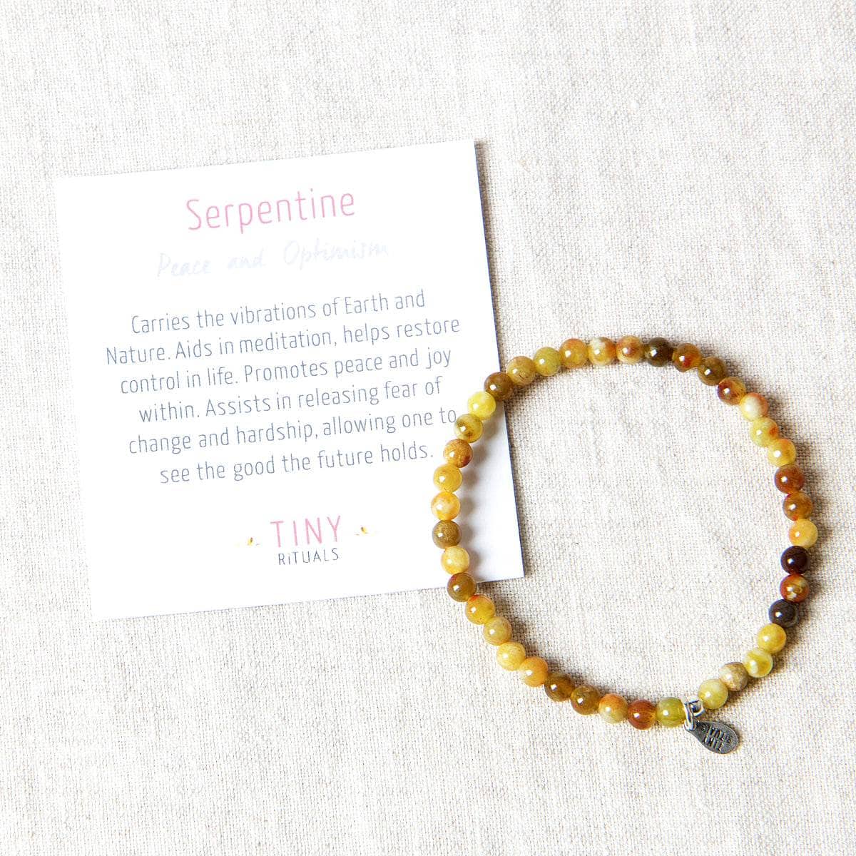 Beyond the allure of a spiritual awakening, the Serpentine Energy Bracelet can do so much more. This gem is about magic both big and small. The Serpentine Stone is also known for encouraging deeper meditation, opening the heart chakra, building on themes of trust and compassion, and helping you make those much-needed shifts - no matter how big or how small they seem to be.