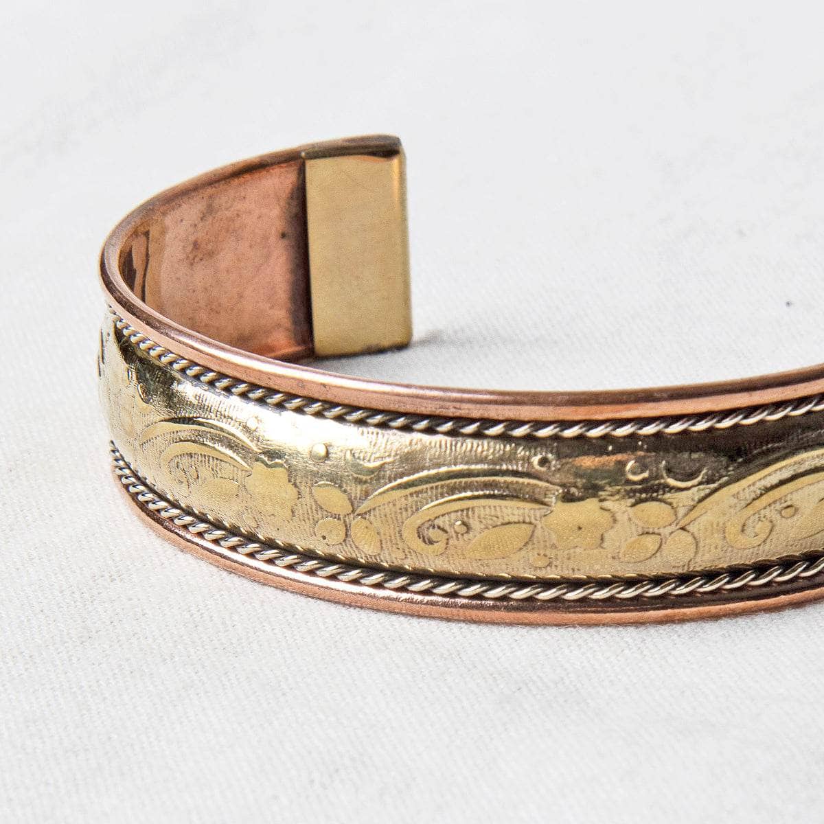Beauty meets grace and high vibrational healing in this Tibetan Handcrafted Brass & Copper Healing Bracelet. Marrying the conductor energy of copper with the playfulness of nickel and the bold balancing act of brass, this bangle comes cuffed with the three healing metals forged with love by Tibetan Monks from the Drepung Loseling Monastery in India.