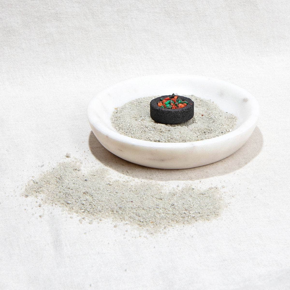Soaked in potential and with harmonious healing vibes, this White Marble Smudge Bowl Kit comes with all the ingredients you need to cleanse your space. With a unique white marble smudge pot, natural sand, California White Sage smudge, and a smudging instruction card for guidance, you can chase out spiritual shadows, purify any place, and enjoy the bliss of brighter moods and sweeter sleep.