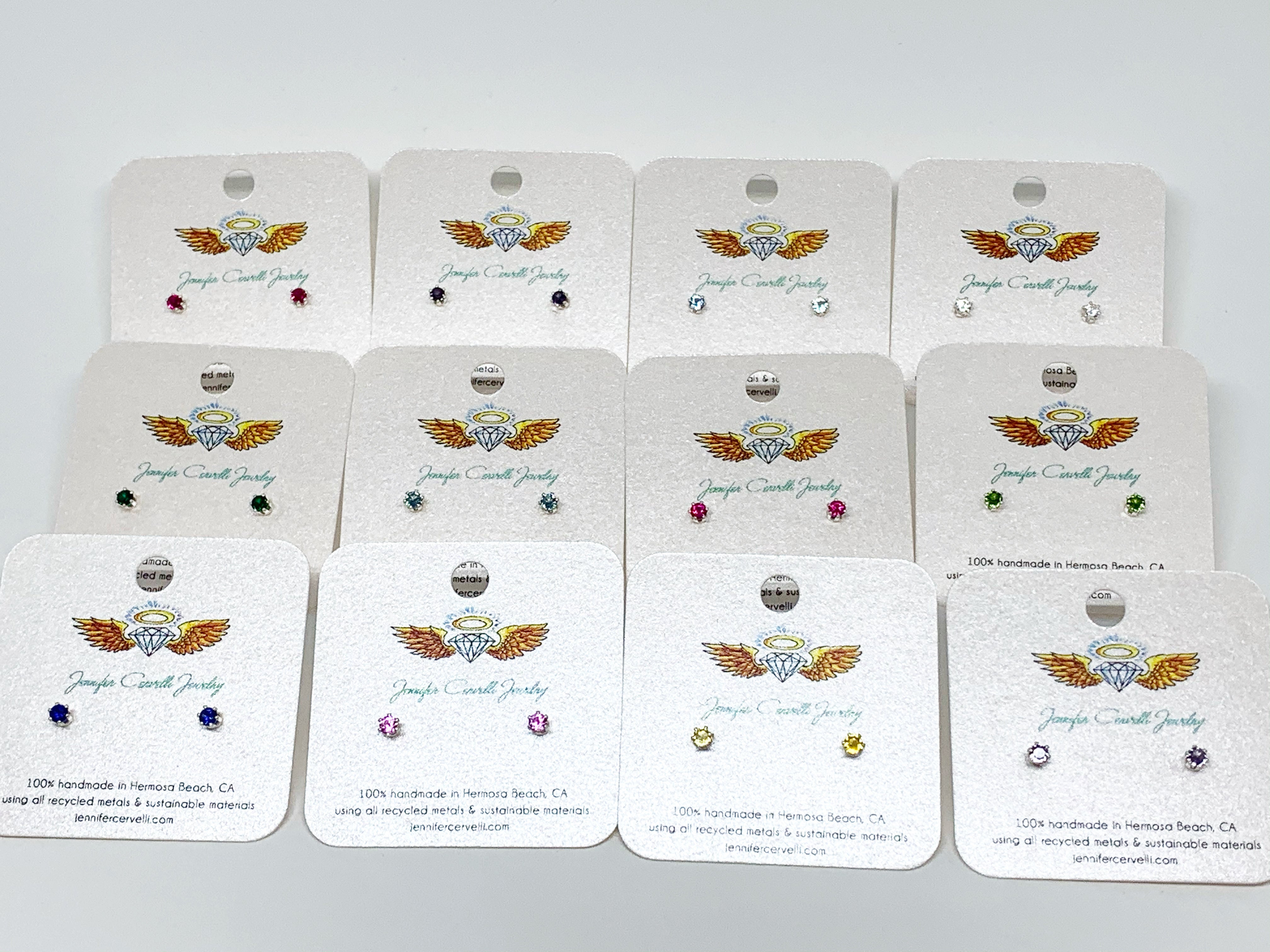White Sapphire Birthstone Earrings - April Birthstone by Jennifer Cervelli Jewelry