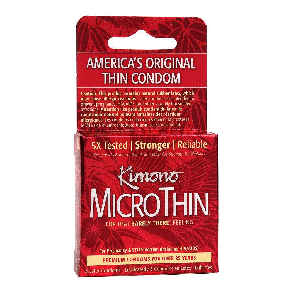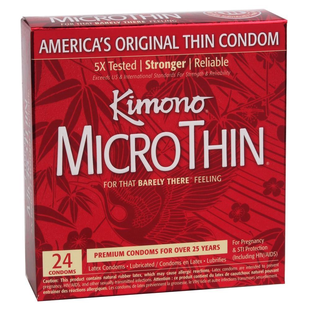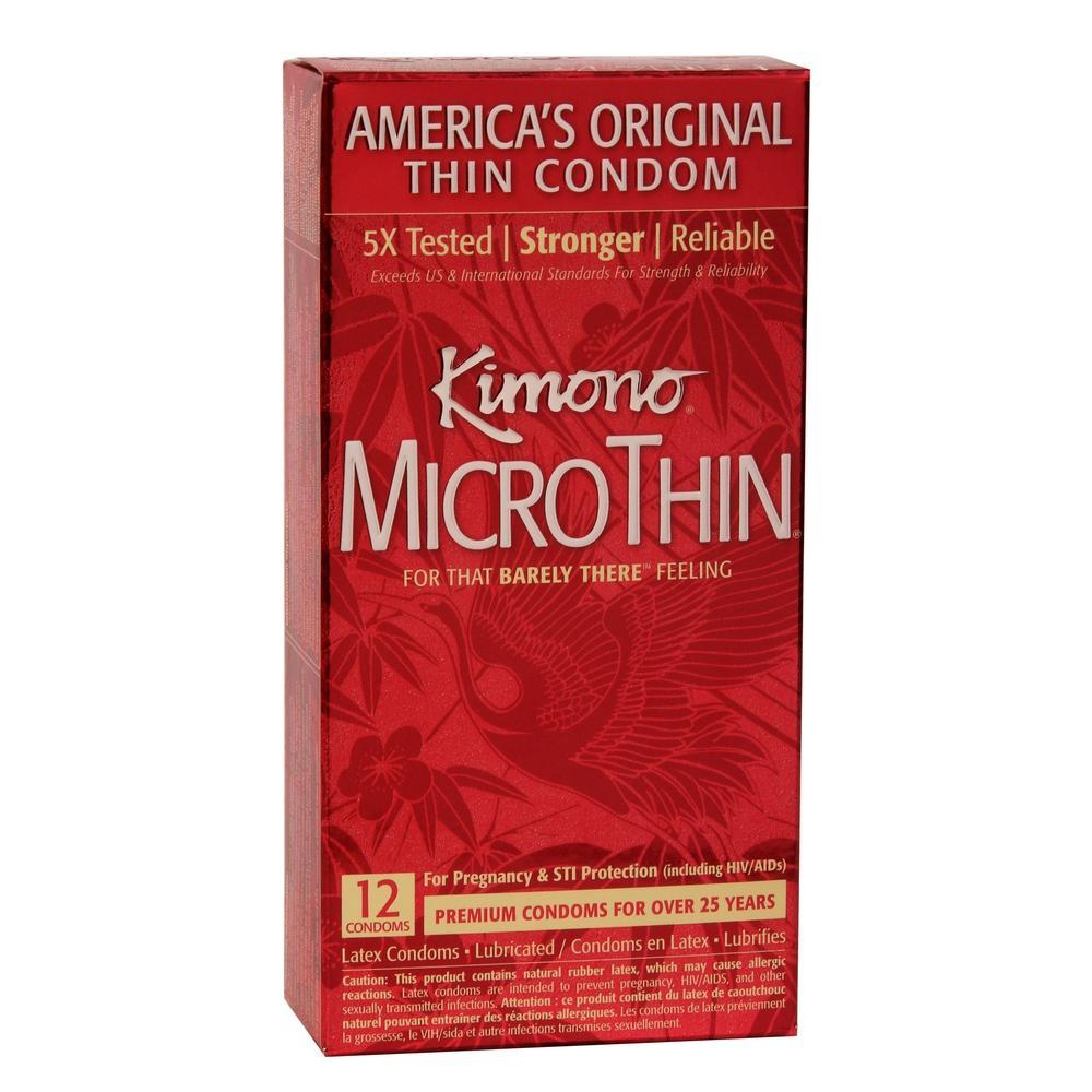 | How thin are Kimono MicroThin condoms? | Kimono MicroThin condoms measure .044 mm thin. The average condom is about .065 mm thin. |