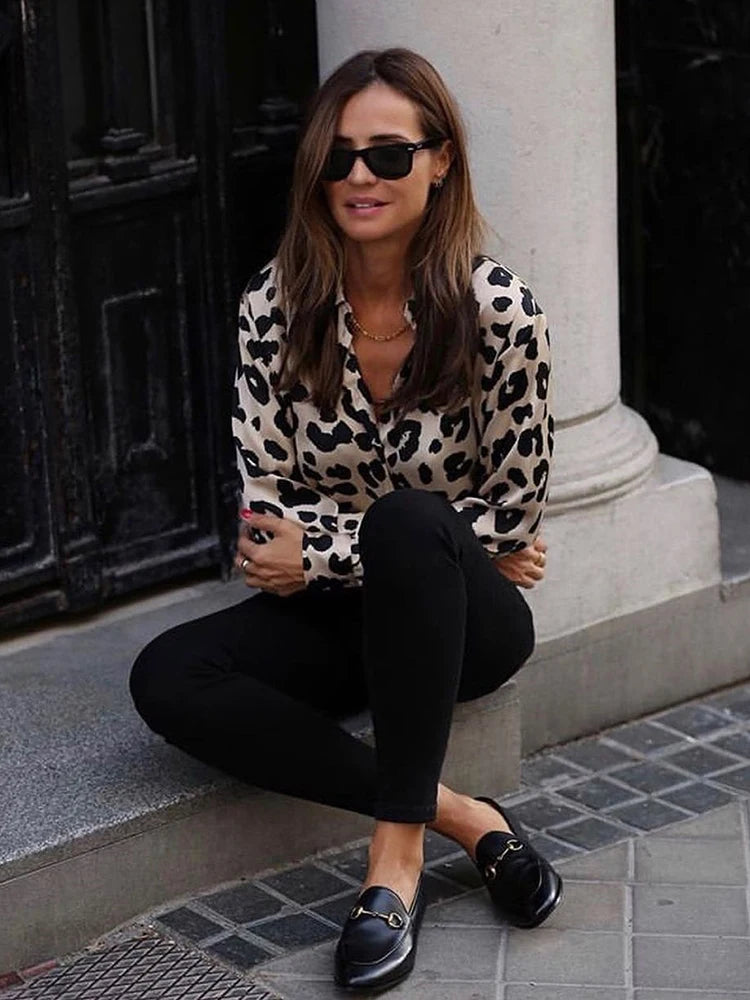 Satin Long Sleeve Print Blouse