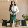2 Piece Set -White Blouse and Green Pencil Skirt