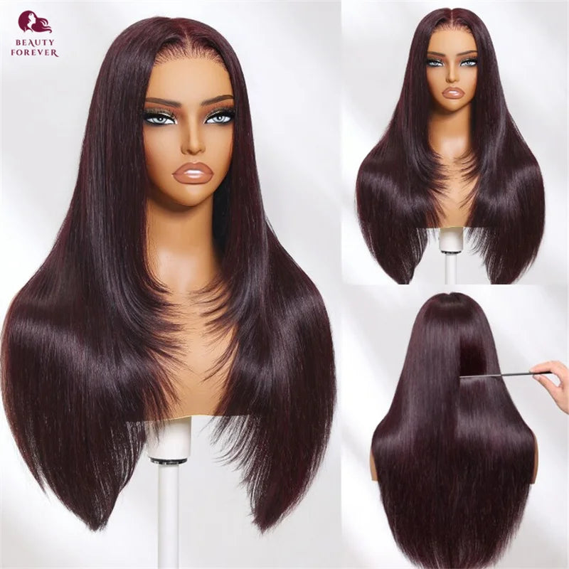Beautyforever Black Cherry Layered Straight Glueless Wig Bye Bye Knots 7x5 Gluless Wig Pre plucked Wear and Go Human Hair Wig