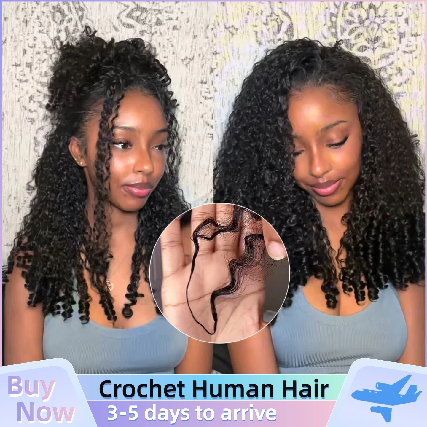 Brazilian 12A Small Spirals Burmese Curly Kinky Curly Crochet Human Hair 100% Deep Wave Feather Hair Extension Kinky Straight