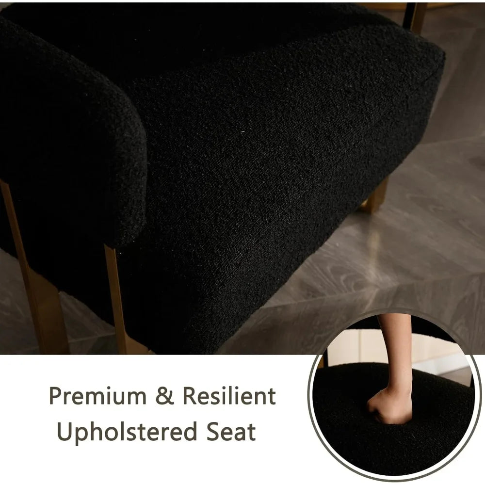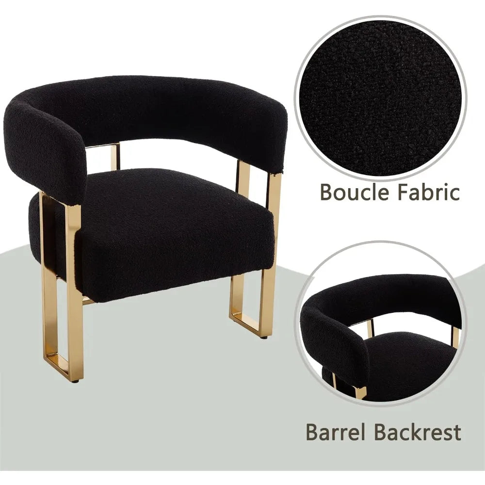 Modern Barrel Boucle Fabric Living Room Chairs with Gold Metal Legs, Set of 2