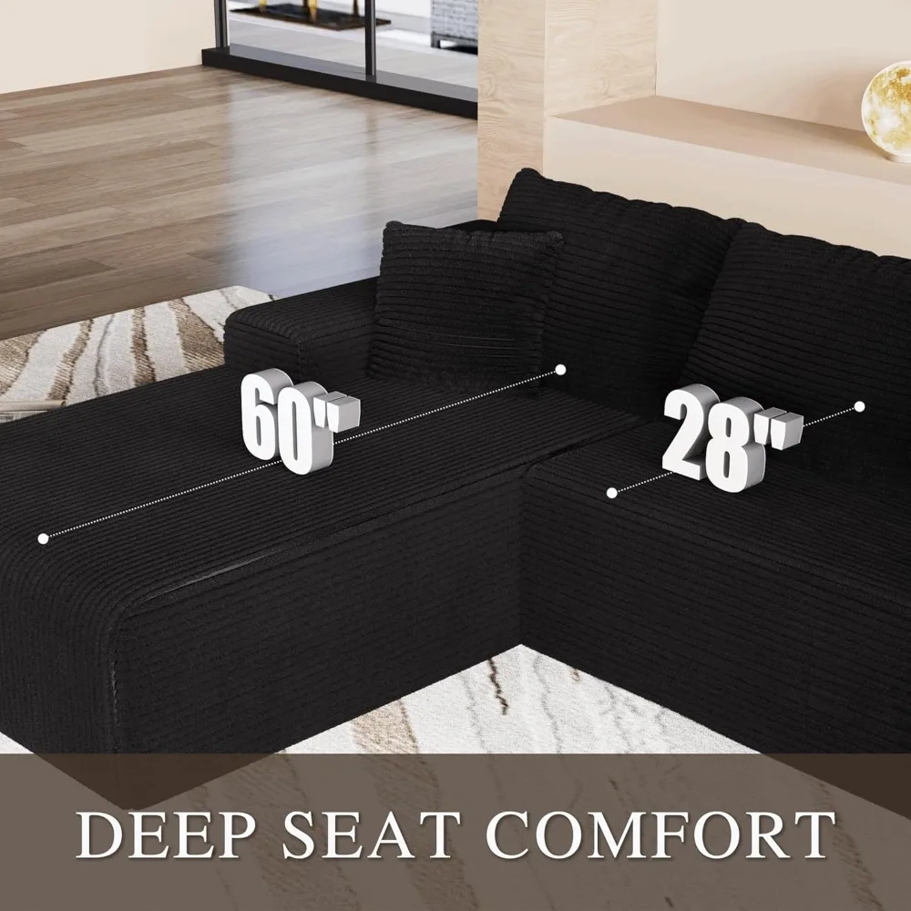 Modular Design: A versatile and minimalist L-shaped sectional sofa featuring two chic pieces that allowing you to rearrange and customize the layout to suit your space and preferences, perfect for contemporary living rooms, bedrooms and play areas.