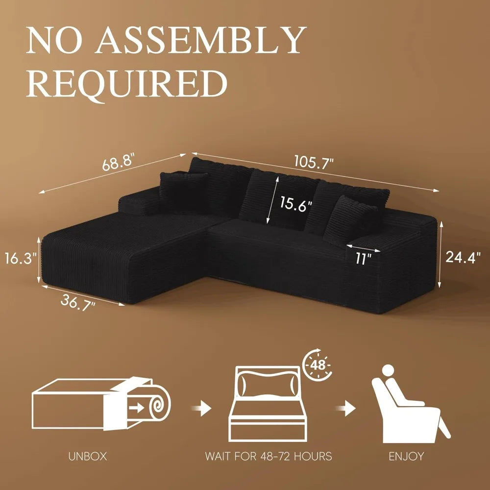 Spacious Seating and Versatile Sleeper Sofa: With a seating capacity of 3 and a generous size of 105 inches, this L-shaped couch can also be transformed into a comfortable sleeper sofa, offering multi-functional convenience for overnight guests or movie nights.