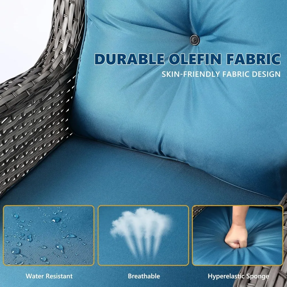 Weather-Resistant Materials: Crafted from weatherproof PE resin wicker, the set withstands intense exposure without fading or cracking. After rain, simply wipe dry with a cloth to keep the outdoor chairs looking brand new, making it an excellent option for outdoor wicker chair furniture in yards or decks. The entire frame is coated with rust-resistant paint, ensuring stability in coastal and high-humidity environments.
