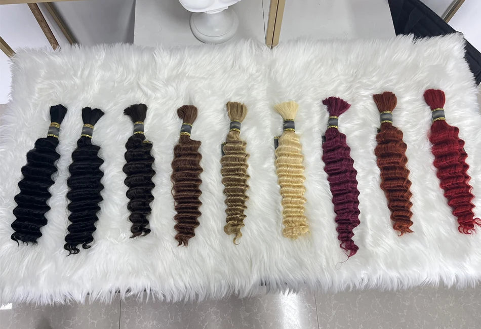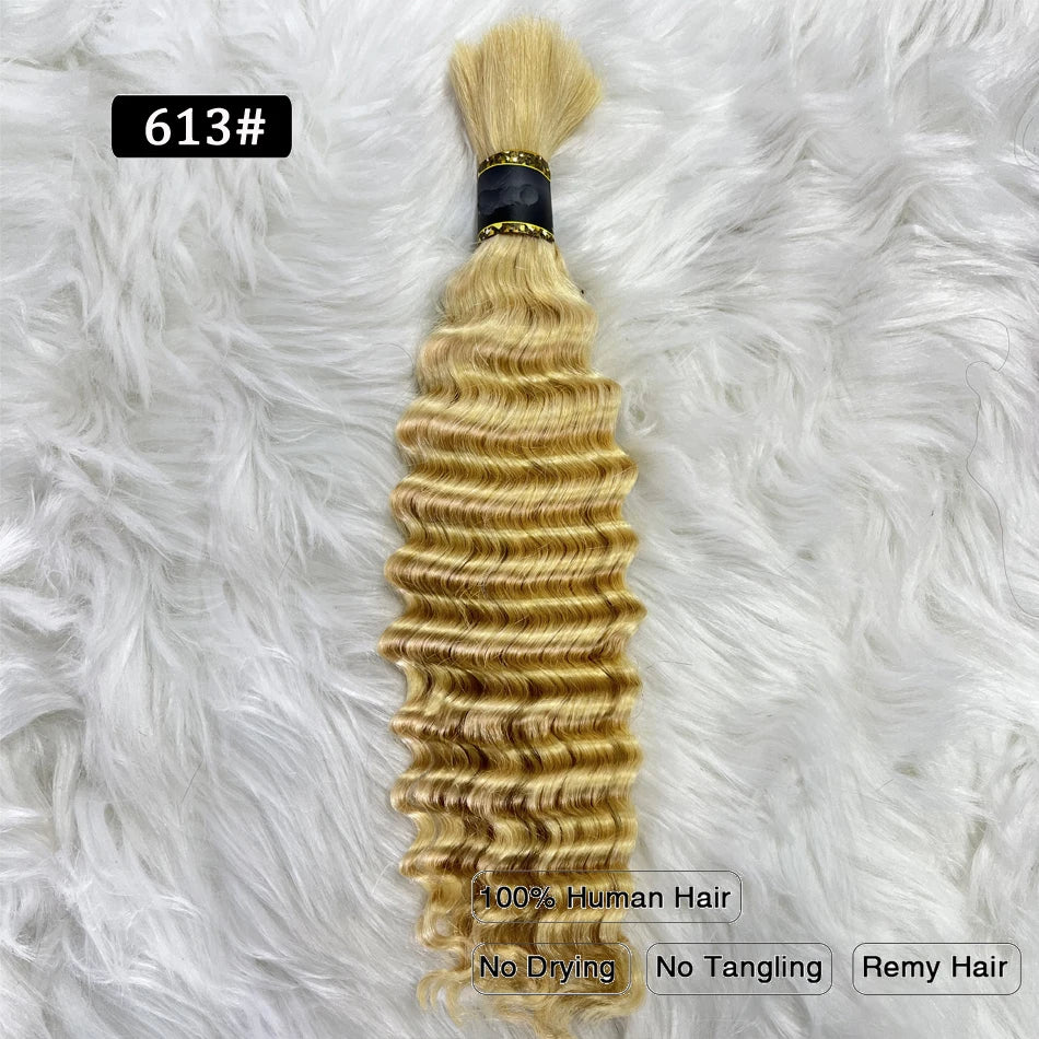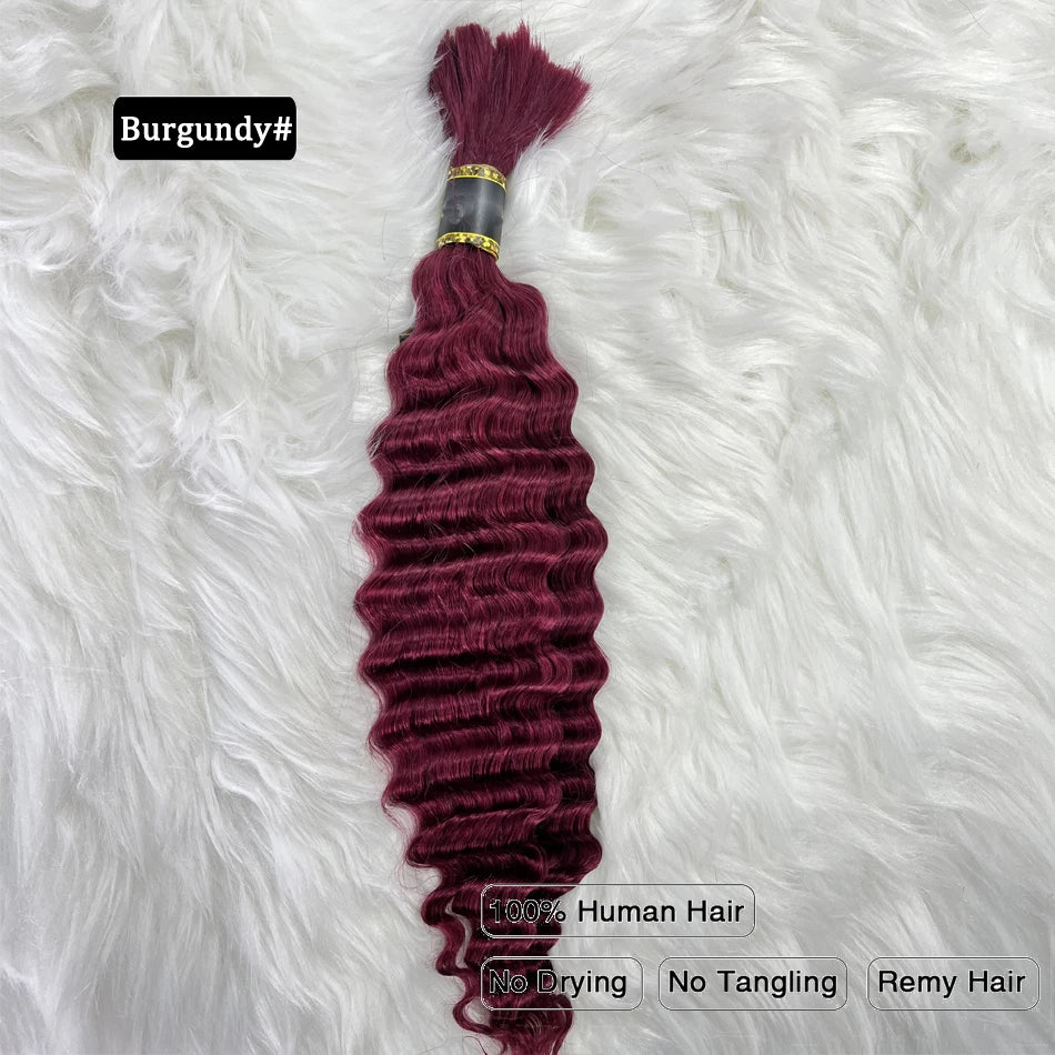 Pre-Colored Deep Wave Bulk Braiding Human Hair No Weft Remy Bulk Human Hair 14 To 28 Inch Bulk Hair Extension Crochet Braids