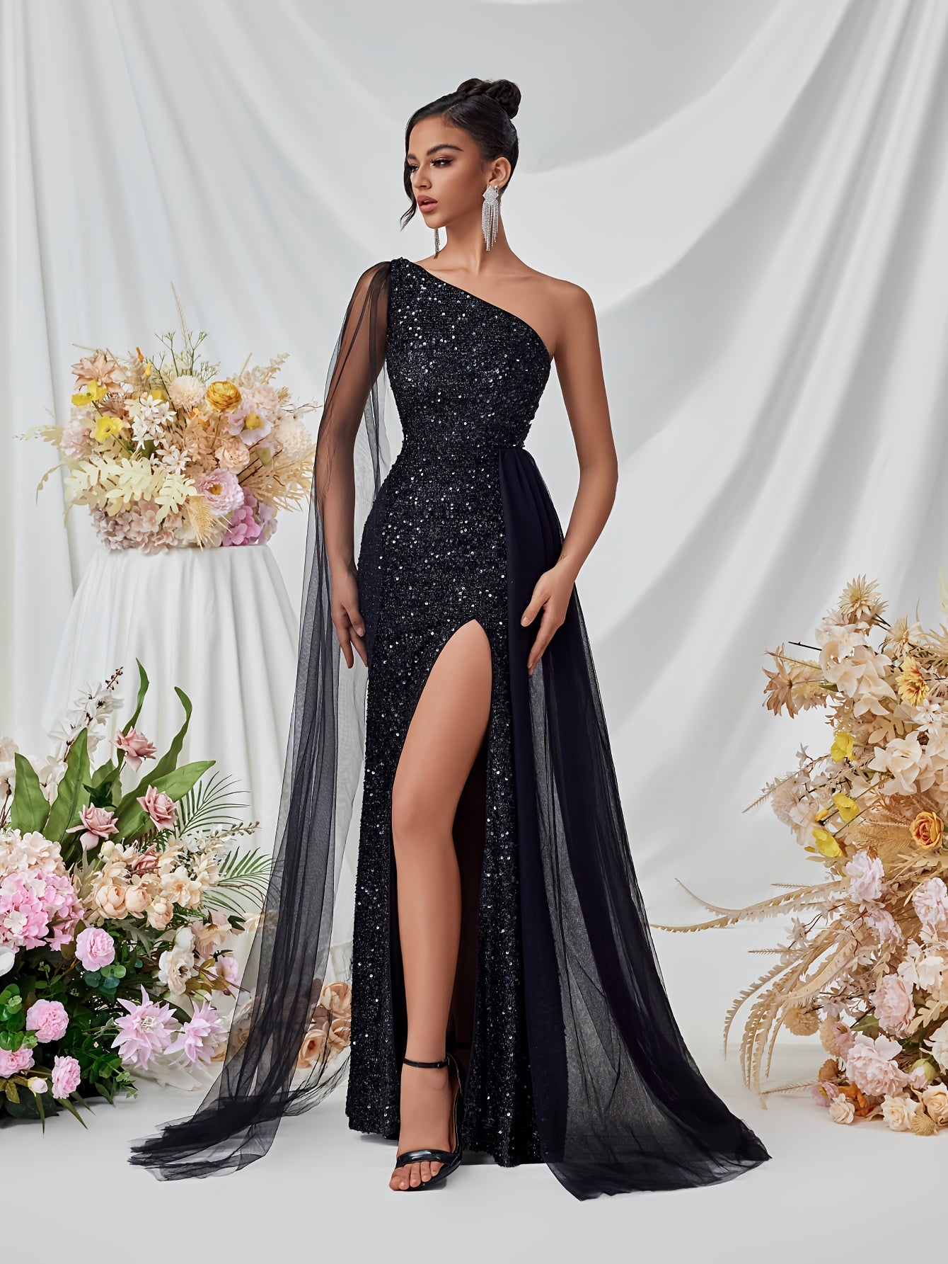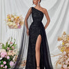 Women's Single Shoulder Long Front Split Formal Evening Gown