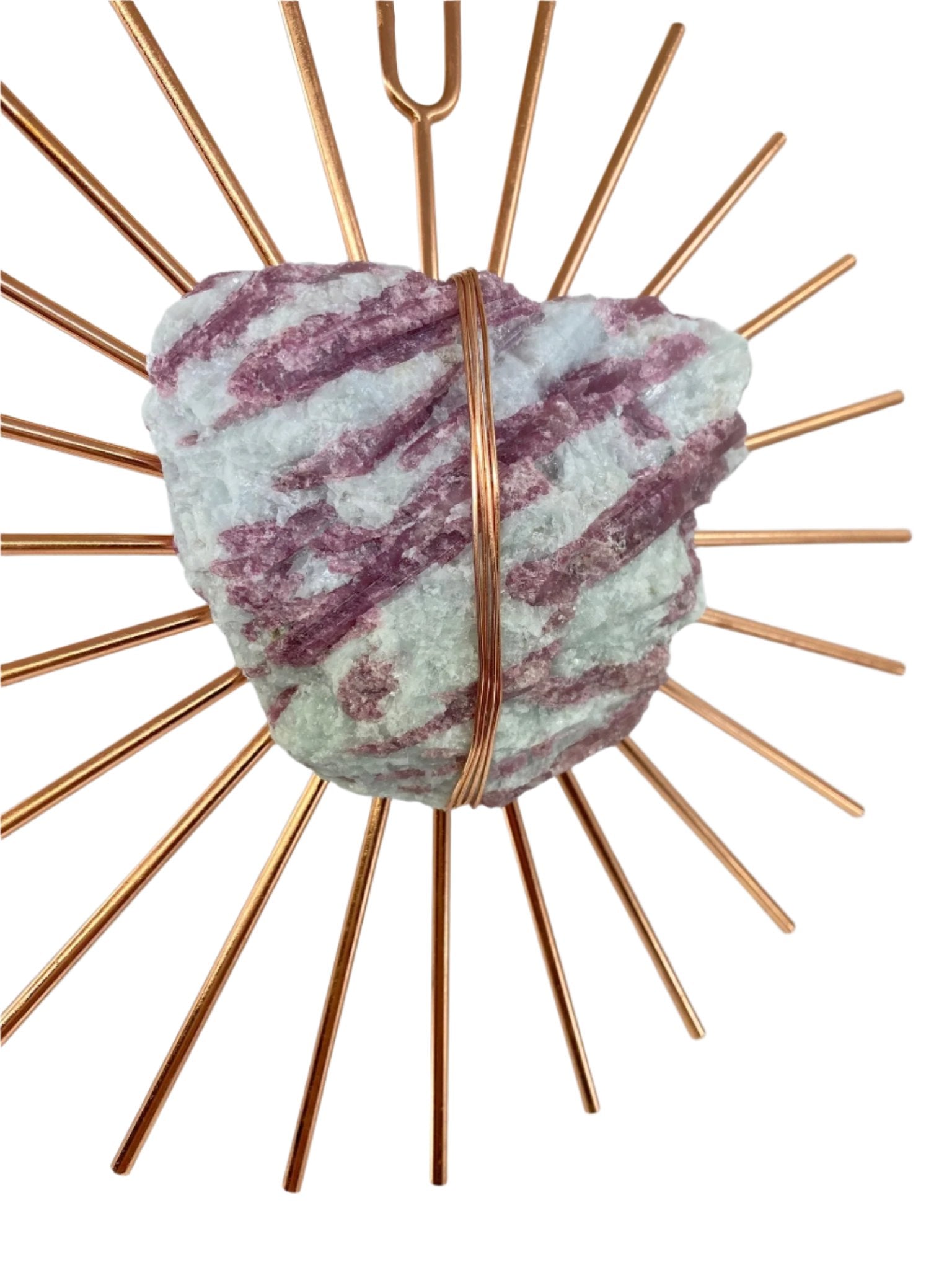 Welcome the energy of the sun into your space with the Sunburst Mega Pink Tourmaline Healing Crystal Grid. Designed to let the powerful energy of crystals radiate like lightwaves, this grid base brings bright light and positive vibes into your environment.