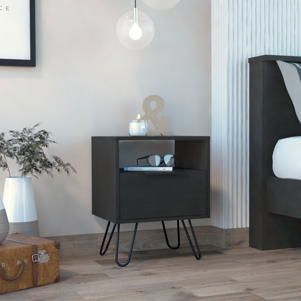 Vienna Nightstand, looking for a cool, contemporary nightstand? Check out the Vienna Nightstand! This stylish piece features an ergonomic design and plenty of storage space, making it perfect for any modern bedroom. At only 22.2 inches high, it's ideal for small spaces. So, make your bedroom, even more, inviting with the Vienna Nightstand. Designed with elegant black wengue, light oak, smokey oak, and white manufactured wood finish.